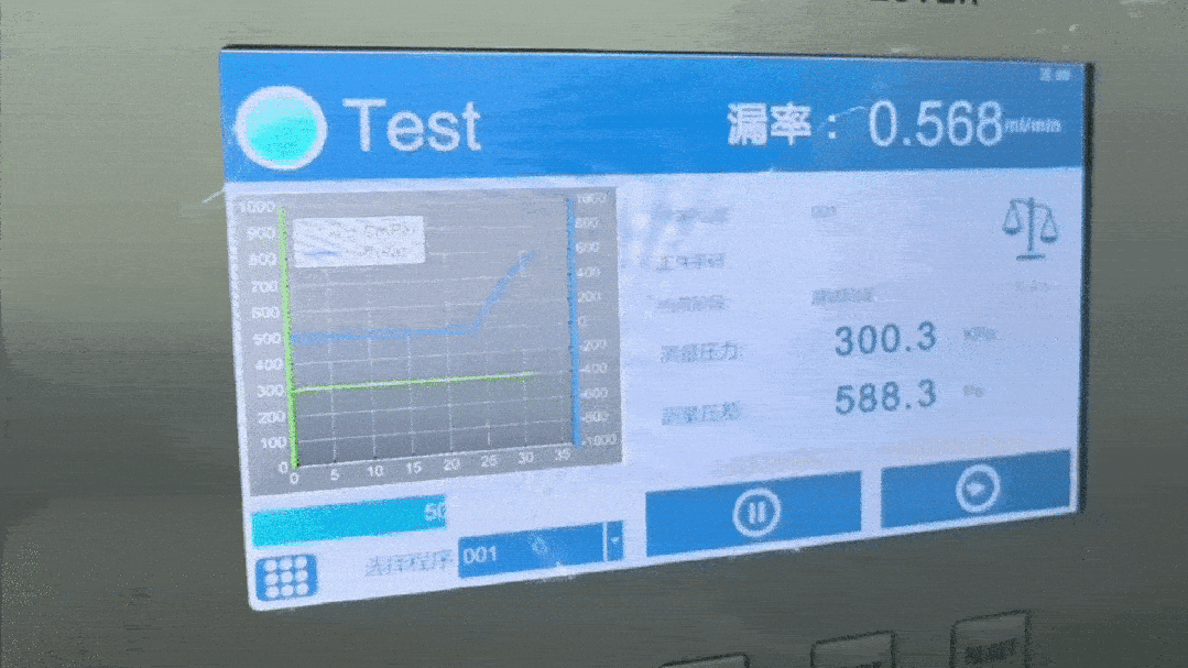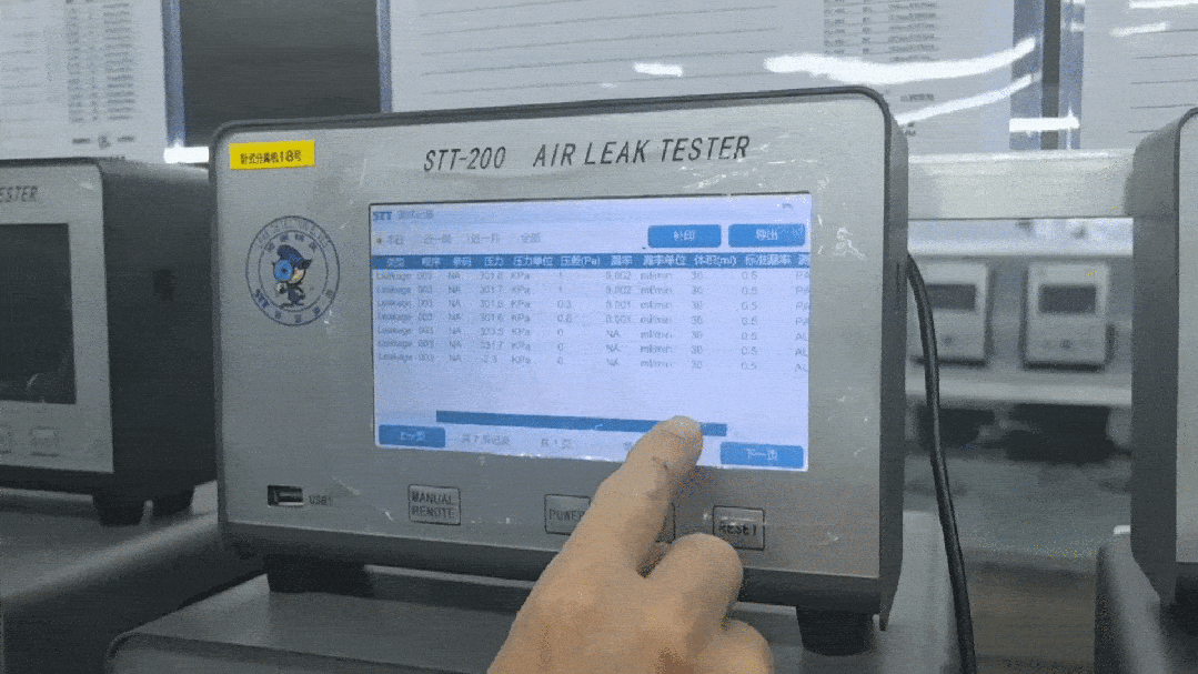 在设备编程阶段,可以预先设定一个标准漏率,比如 0.5ml/min。如果检测到的漏率值小于这个阈值,就判定被测件密封合格;反之,如果大于该阈值,则判定被测件泄漏超标。系统内部会自动记录下测试时间、条码、压差、标准漏率、测试结果、事件等相关数据,操作人员可以随时查看,并进行产品质量的追溯。